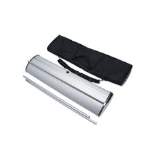 The 2'7" x 6'7" rollup banner looks great in any church but is perfect for portable churches. The banner retracts into the sleek stand for easy set-up and take down. The 15 oz Non-Curl Vinyl provides for vivid colors and eye-catching graphics whether up close or far away. We use a high quality vinyl that won't curl at the edges - so your banner will stay looking brand new for a long time! (This Price Includes the Stand)