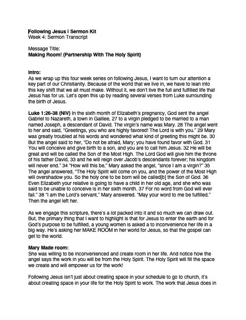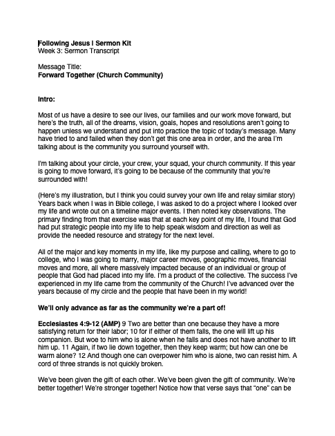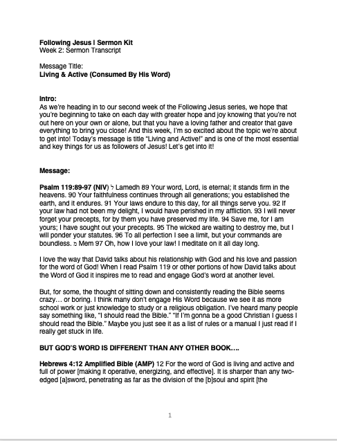 Samuel Deuth put together a 4-part Following Jesus message outlines that you can use as a stand alone series or in connection with a church wide Following Jesus small group campaign.